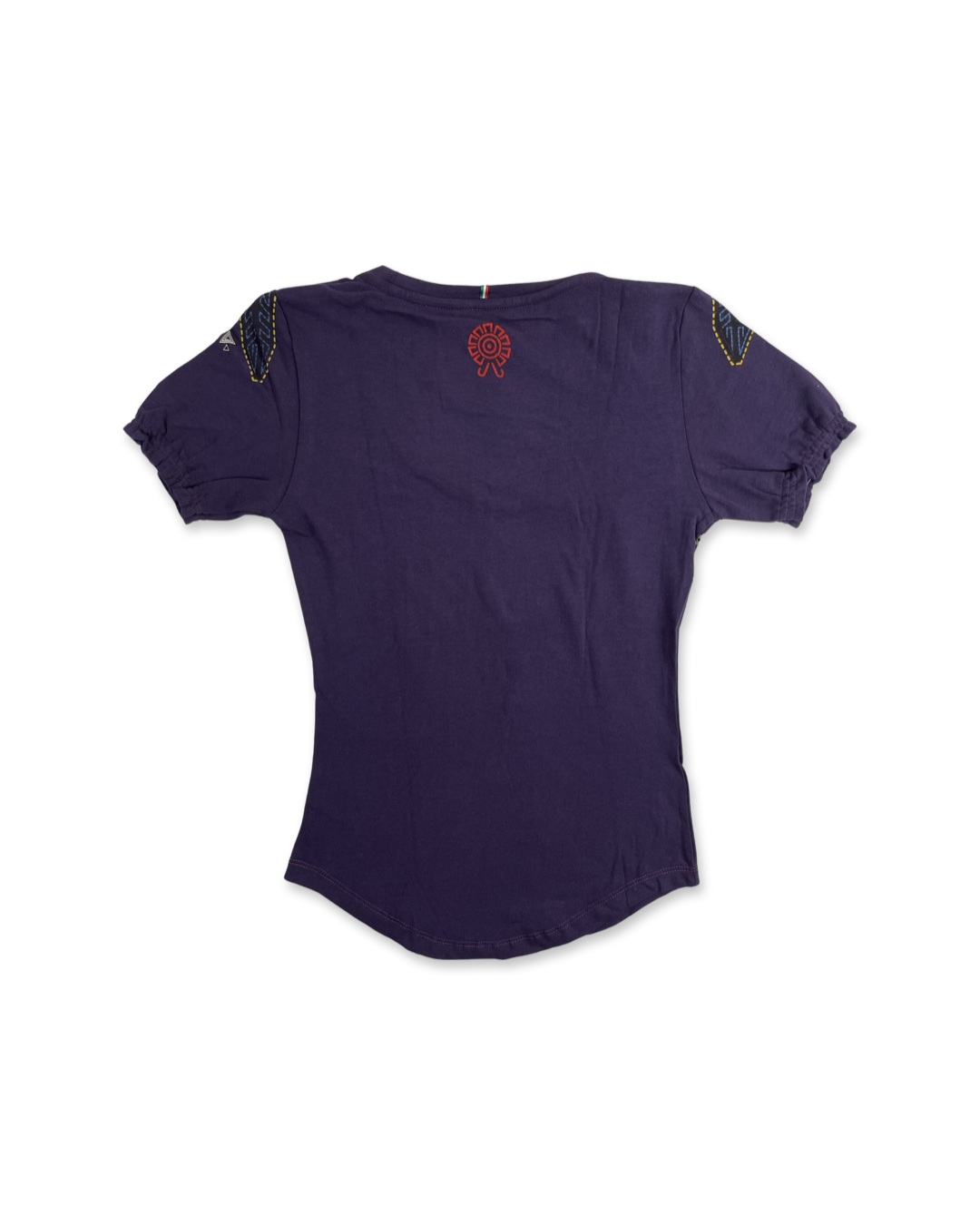 Feather Pectoral Women's Short Sleeve Shirt, Purple