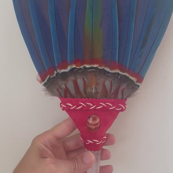 Macaw Smudge Fan with Stone Handle